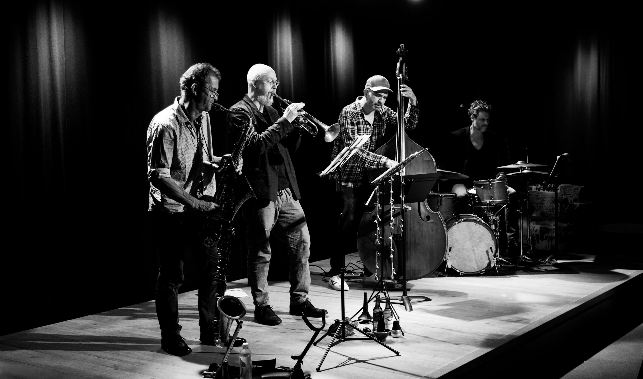 Lotus Crash brings together four outstanding improvisers; their musical biographies are very different; all of them have already distinguished themselves with strong, artistically independent projects and they have been working together for quite a long time in a variety of different constellations. What unites them is their idea of sound and aesthetics. This quartet sounds raw and primal; it has an astonishingly warm and expressive sound. The repertoire consists of their own highly original themes. The line up with two wind instruments plus rhythm section, no harmony instrument, has a long tradition.Lotus Crash develops this tradition further through the use of contemporary instrumental techniques, open forms and hidden composition. The Band`s sophisticated improvisations are off the beaten track; this is creative Jazz at its best.